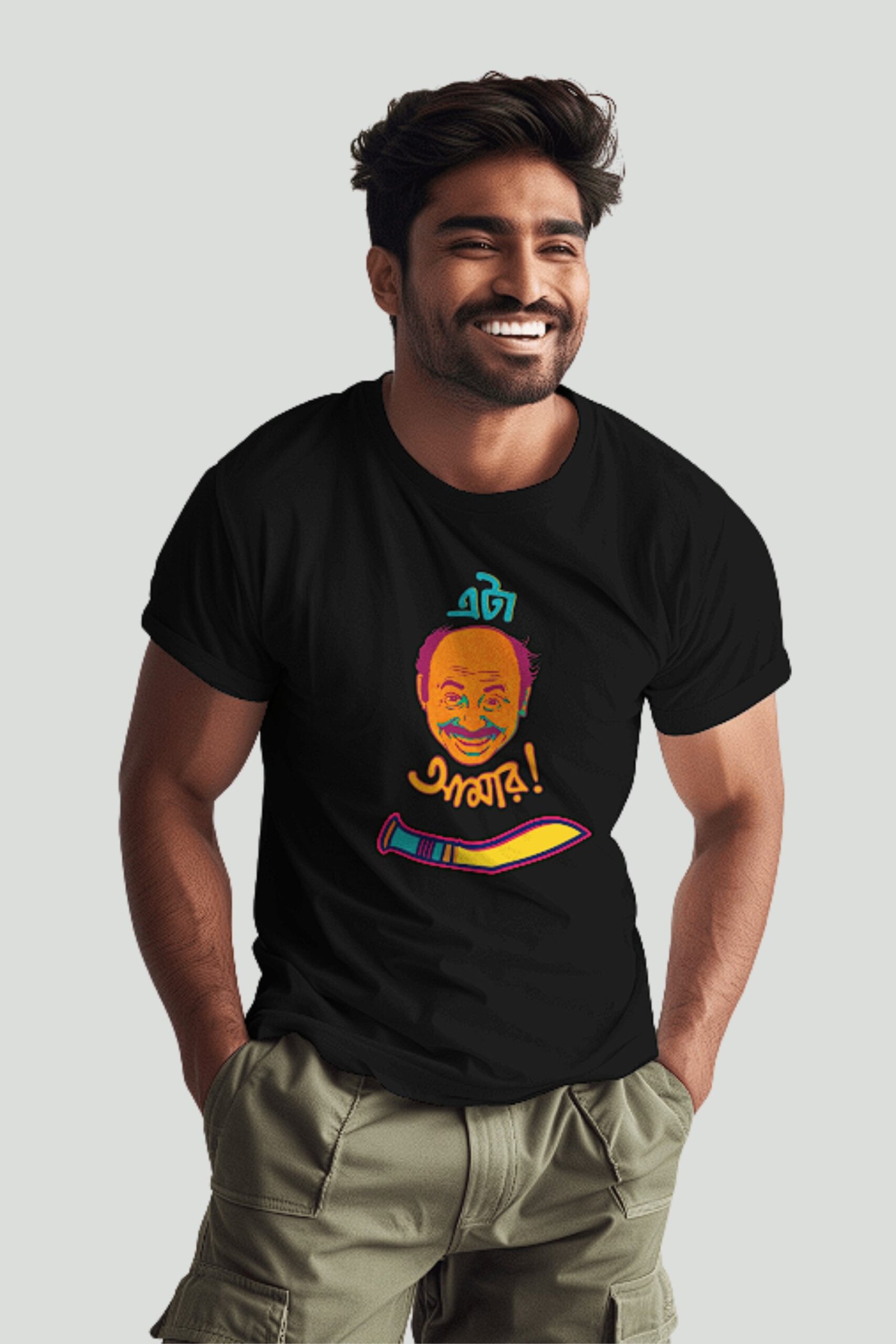 This “এটা আমার” t-shirt is more than just clothing; it’s a wearable inside joke, a conversation starter among fellow cinephiles, and a tribute to one of Bengali literature and cinema’s most cherished characters. It makes an excellent gift for any Satyajit Ray fan, especially those who can’t get enough of the Feluda and Jatayu duo.