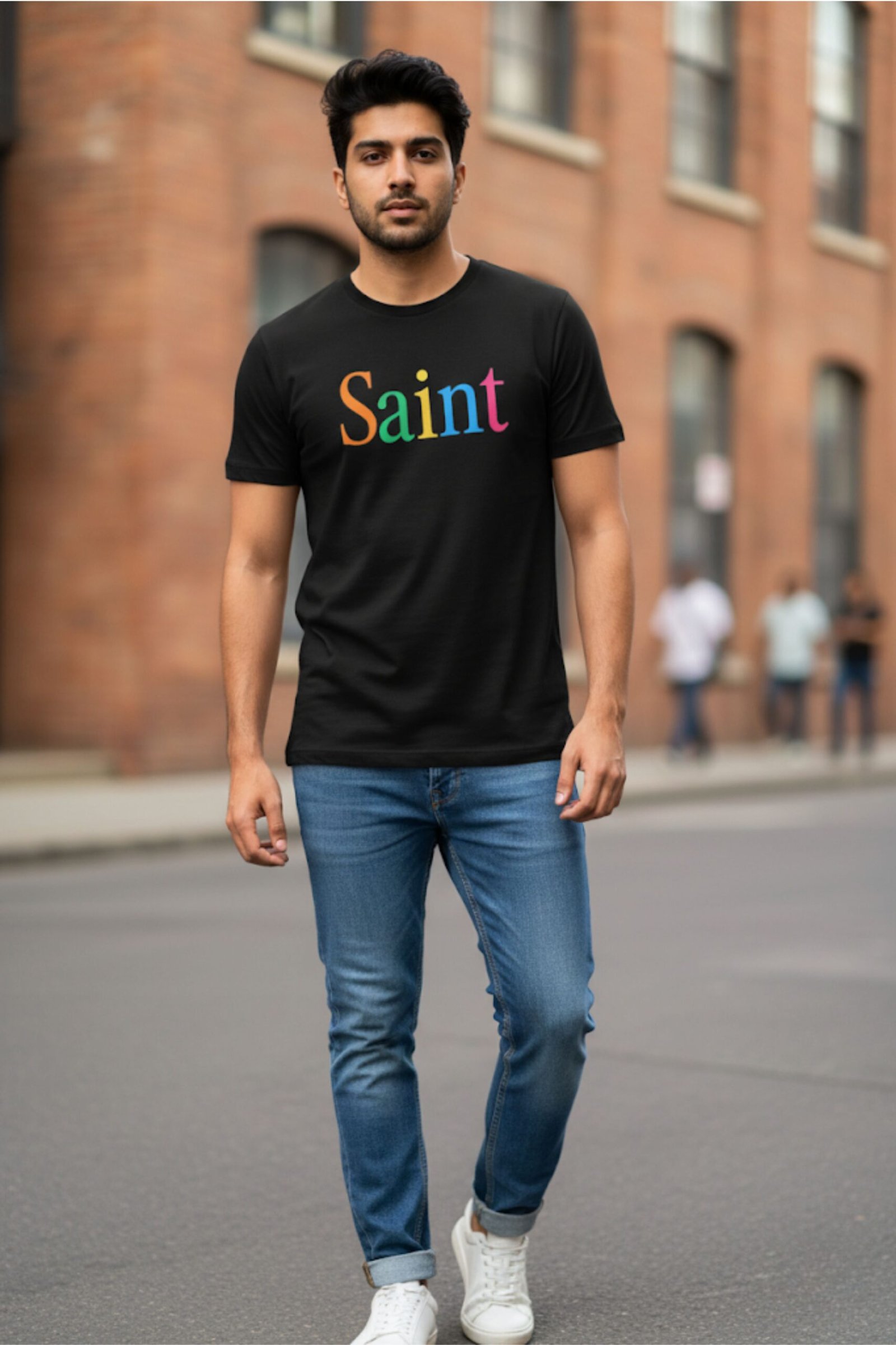 Love this tee. The rainbow “Saint” typography pops beautifully on the black base. Cotton is soft, breathable, and feels premium—not like thin fast-fashion stuff. The unisex fit works for me; not too tight, not baggy. Washed it once inside-out, cold wash, and it still holds shape and the colors haven’t bled. Great for casual outings or layering under a denim jacket. If you want a shirt that’s stylish + comfortable + has a statement, this is definitely worth the price.